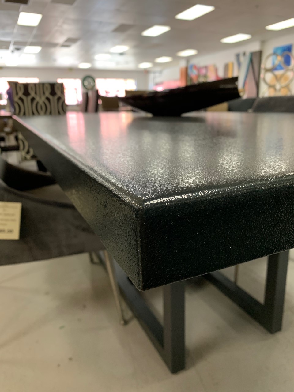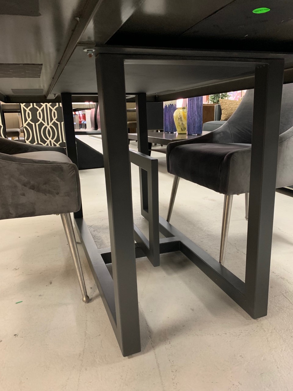 This gorgeous table is made with recycled carbon steel, ground by hand, powder coated, and made in our factory in Denver, Colorado. Delivery is $200 within 15 miles of our showroom at 80 S Santa Fe Drive, Denver, Colorado 80223. Out of state shipping is available and based on your delivery address. We do not offer inside set up on out of state orders. Factory pickup is available. Please call or email for scheduling, shipping quotes, or other questions. (303)-778-0925 sales@oiosmetals.com.